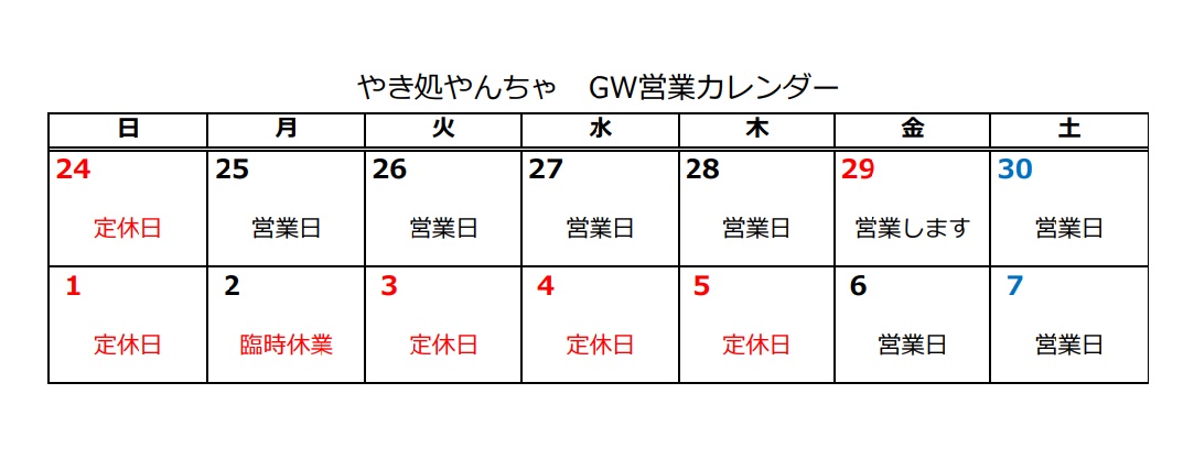 すでにお問い合わせも頂いておりますが、4月29日(金)は通常営業いたします。
