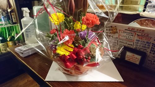 昨夜は、一足早く自宅のお向かいさんホンマくんにお花を頂戴いたしました。