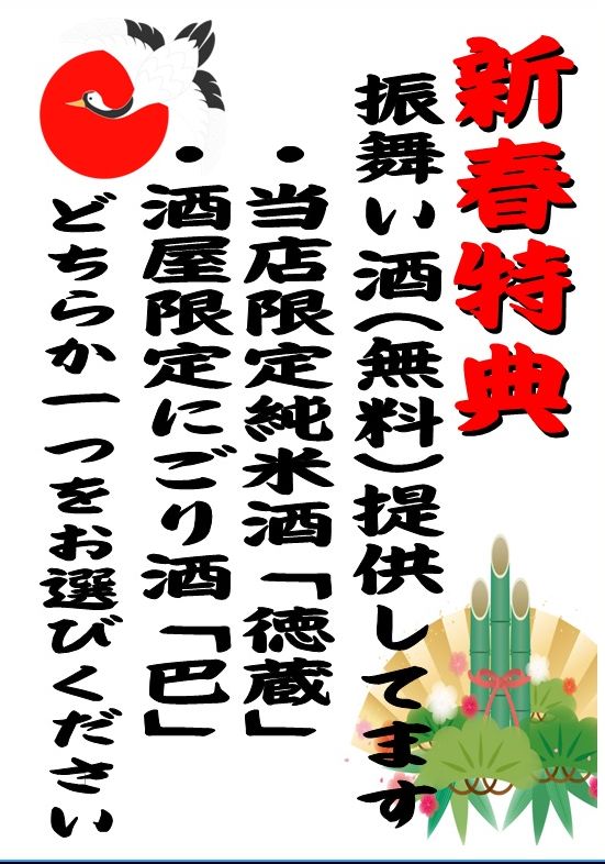 当店限定純米酒「徳蔵」か、酒屋限定にごり酒「巴」のうち、