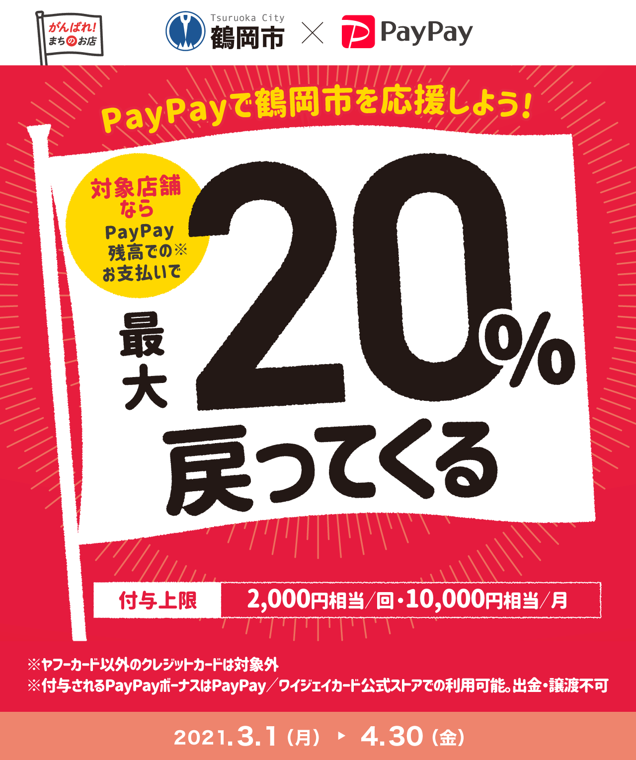 今、鶴岡市の経済活性支援事業で、来月末までPeyPey決済で20%キャッシュバックキャンペーン