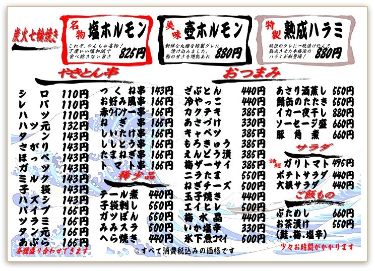 そして、今日から法律が改正されメニューすべてが税込み表示が義務付けされます。