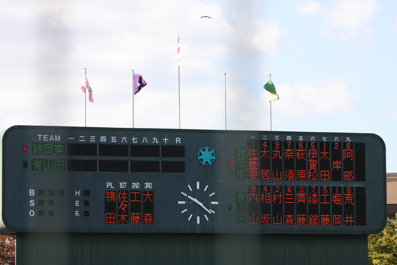 一方、鶴岡東は3回に四死球でもらった満塁の場面で、4番の一振りで3点を先取。