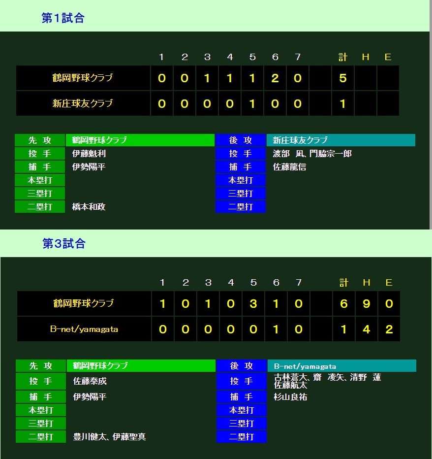 13:00 鶴岡野球クラブ vs B-netYAMAGATA