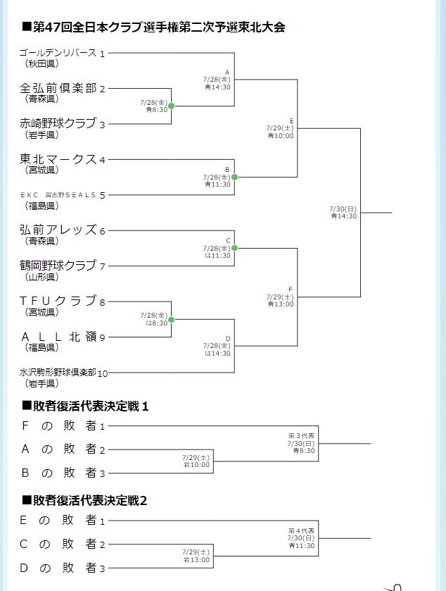 クラブ選手権東北二次予選は敗者復活戦もあります。