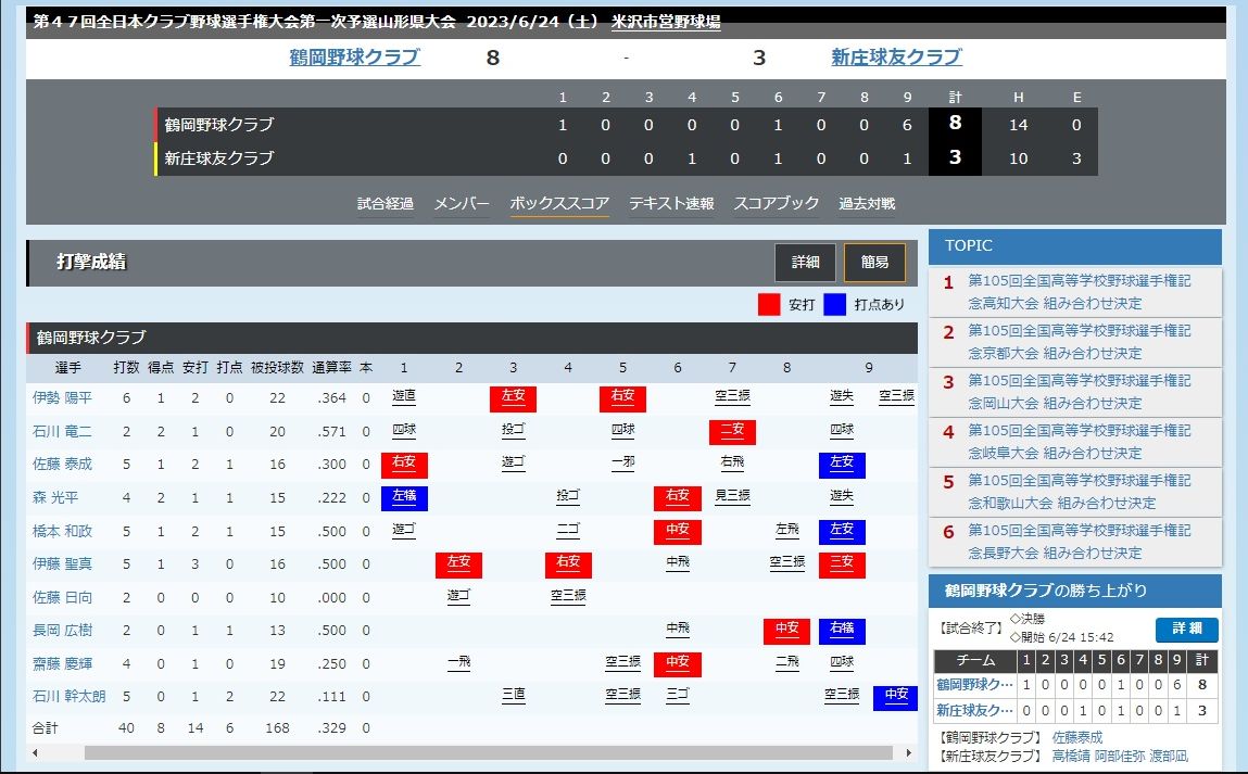 この試合は、鶴岡野球クラブが初回に幸先よく先制するも4回に同点に、