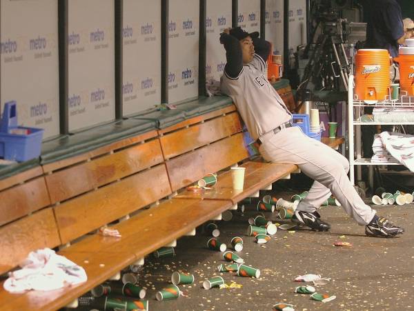 「なんでメジャーのベンチはあんなに汚いんだろ?絶対に考えられんわ。」と言うんで