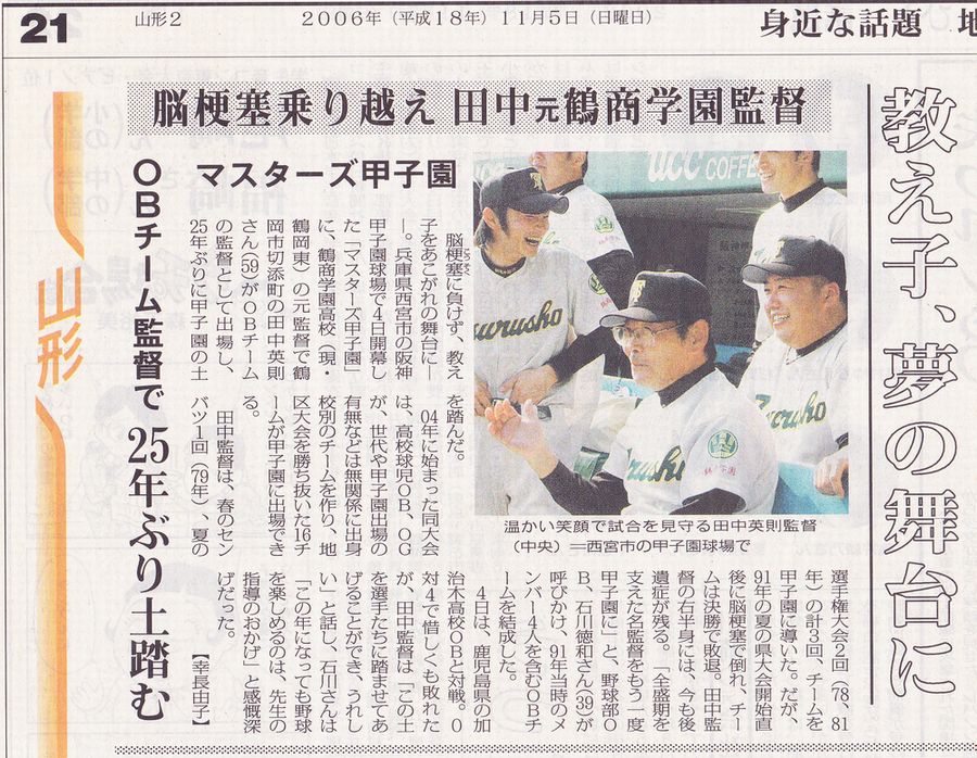 7月27日に母校「鶴岡東」が30年ぶりの甲子園出場を決めてくれて、