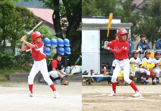 4年生のスポ少初打席の時と、6年生の最終打席との構えを比べると、