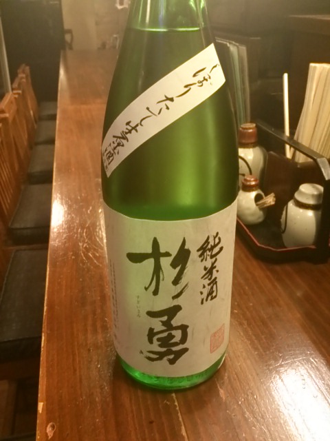 そして、本日2本目のお酒は、杉勇蕨岡酒造の「杉勇 純米しぼりたて生原酒」です。