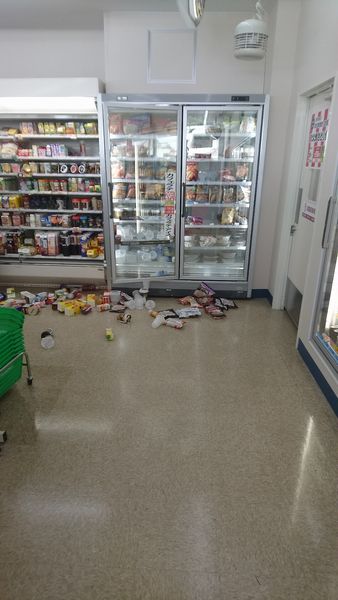 行ったら、突然「ドガーン!!」と音がして、棚の商品が崩れ落ちてきたんですよ。