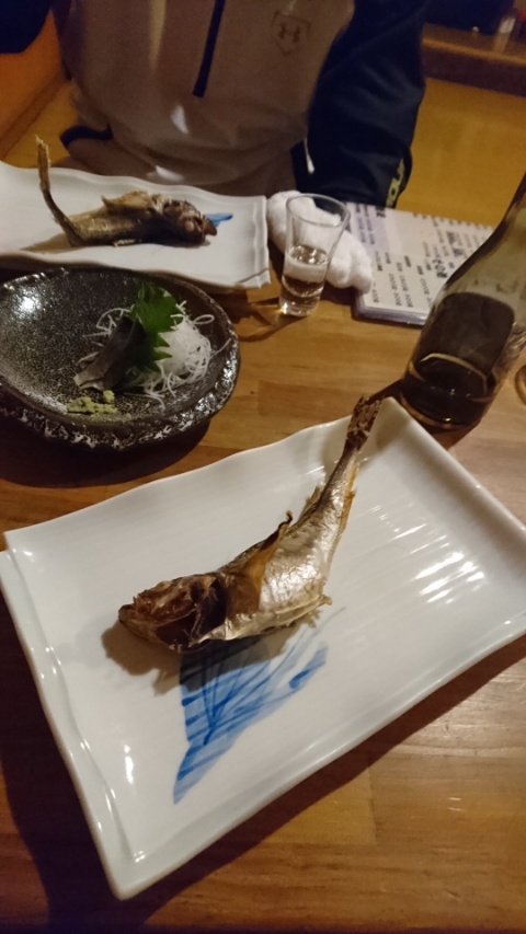ハタハタの子持ち焼きも皿に一匹そのままで980円