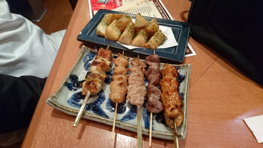 1軒目に入った炭火居酒屋さんで、焼鳥盛合わせと比内鶏の炭火焼をオーダーしましたけど、
