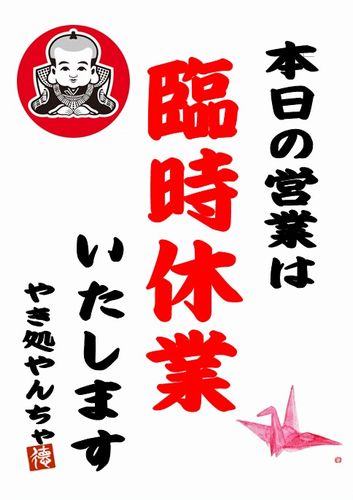 ご来店を予定されていた方には申し訳ありませんが、また明日以降のご来店をお待ちしております。