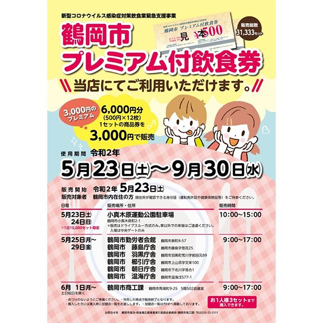 先日から告知していた「鶴岡市プレミアム付飲食券」の販売が23日にあったわけですが、