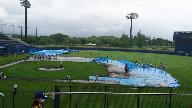 グラウンドは池のように水が溜まり、1時間遅れでは試合開始にはならないだろうと思っていました。