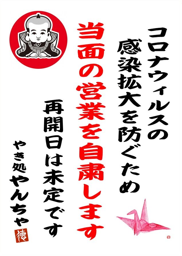 GW明けの5月6日頃までの期間、営業を自粛することにいたしました。