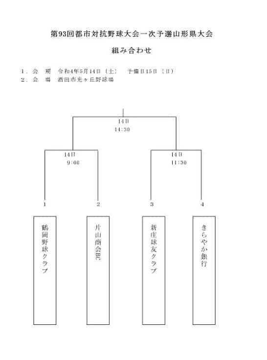 明日、酒田光が丘野球場で開催される都市対抗野球山形県予選会の組み合わせが決まりました。