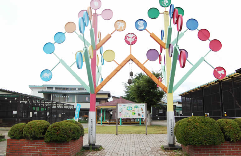 ここは河北町役場の裏にあって、八幡神社の隣には児童動物園も隣接されています。