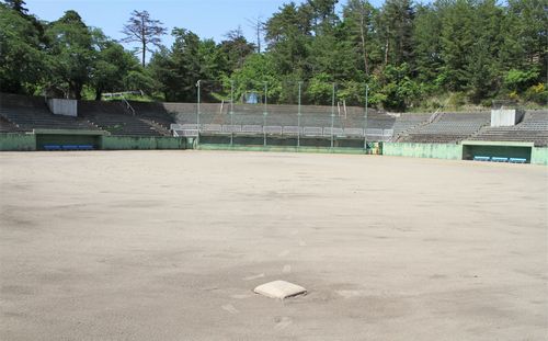 そのすぐ隣にある「寒河江市野球場」を外野から覗いてみます。