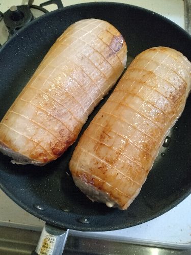 オーブンは使わずにフライパンで出来る範囲で表面をしっかりと焼いていきます。