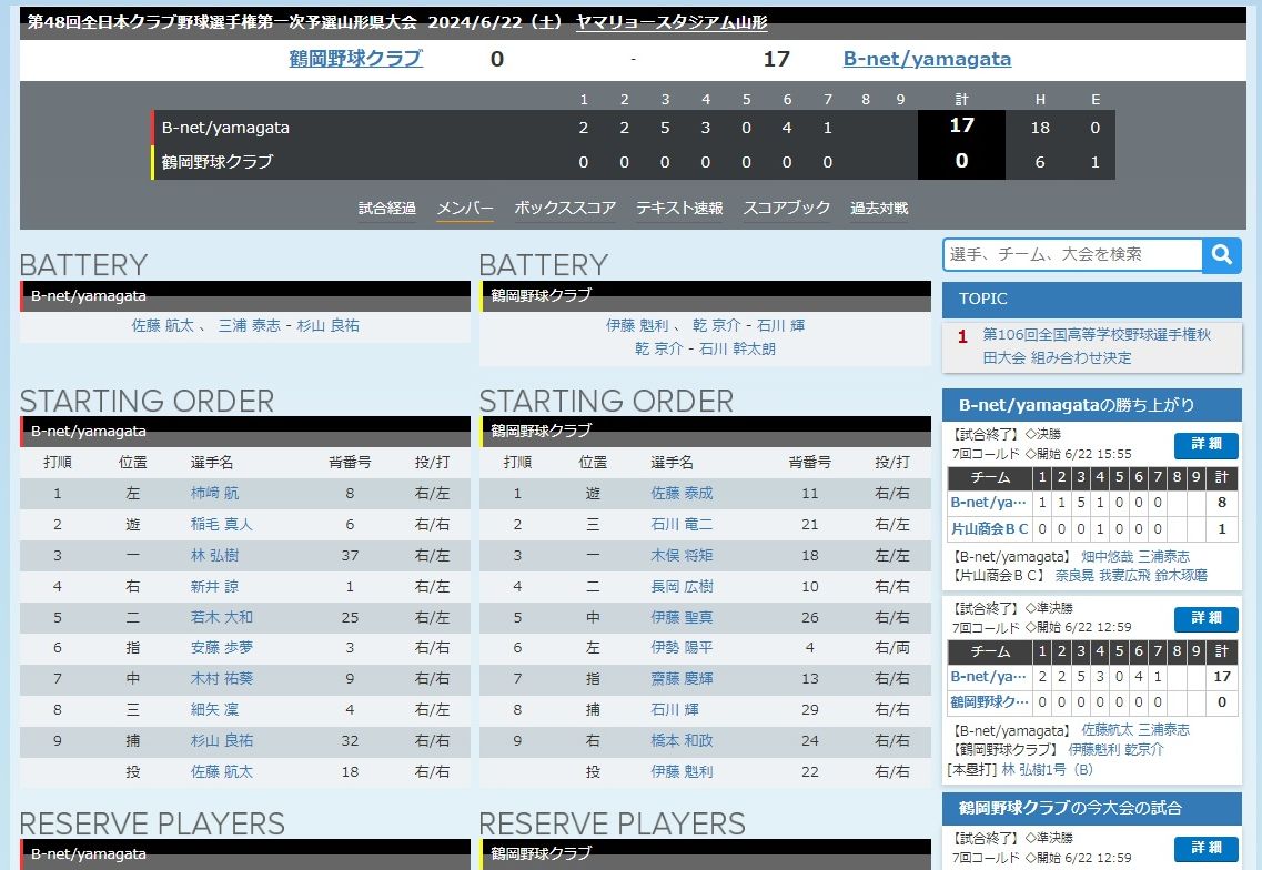 一方でベテラン乾と3年目捕手石川幹とのコンビは昨年のクラブ選手権山形予選でB-netから