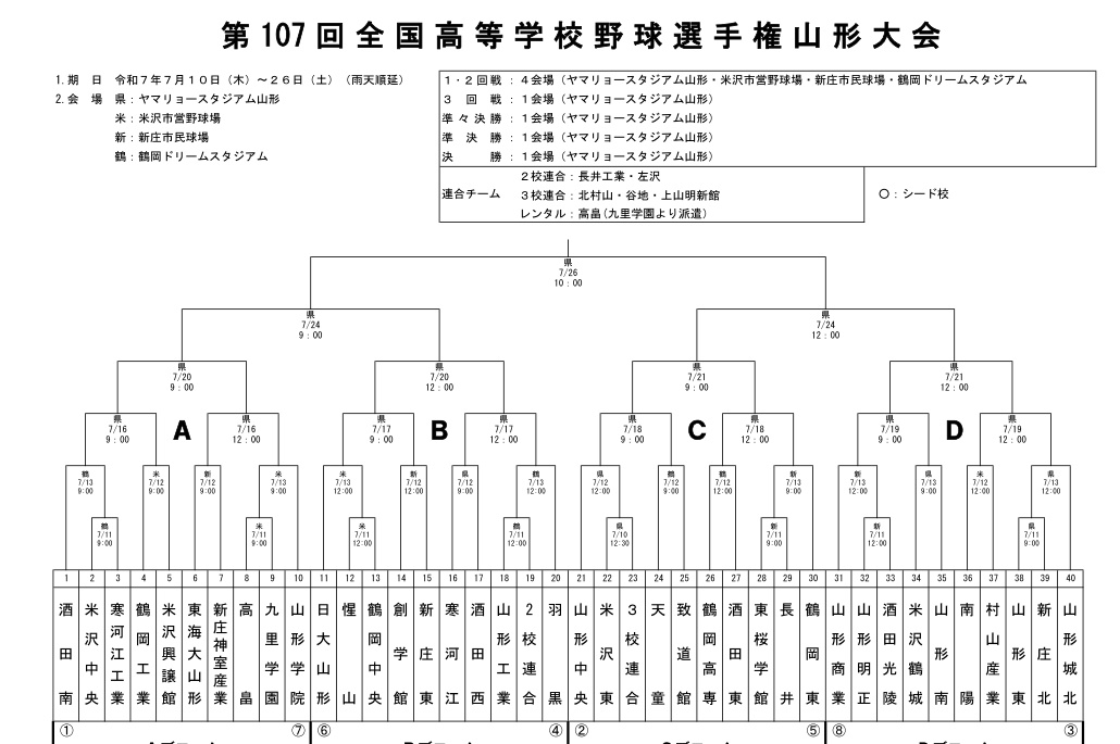 夏の高校野球山形県大会の組み合わせが決まりましたね。