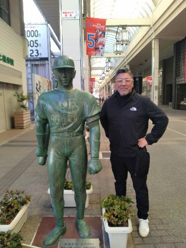 中でもあぶさんが好きだった自分は、主人公・景浦安武の銅像とツーショット。