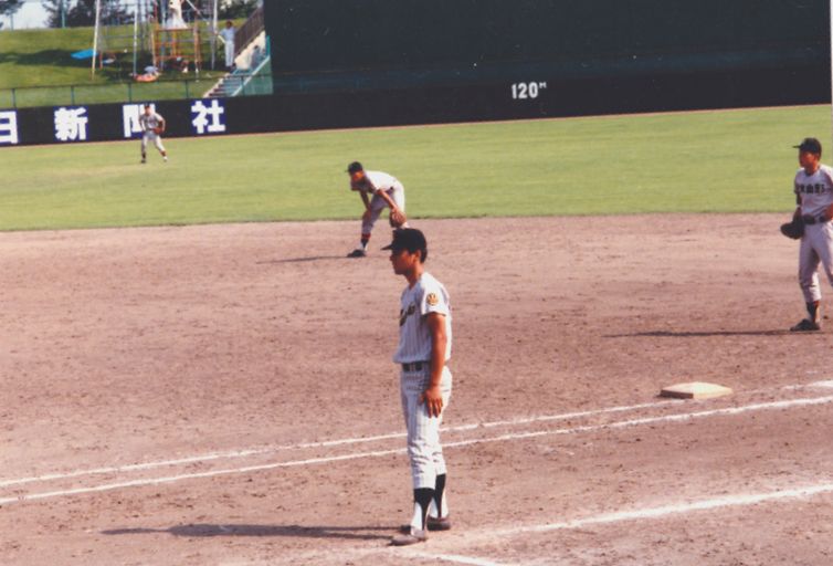 2回目は県野球場で一塁の守備についた時、ランナーがリードするたびに、