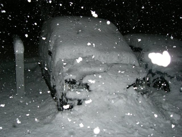 道路には雪が全くなかった夕方に車を止めて、8時間後には車が出れないほど積もりました。