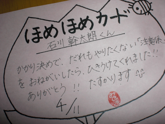 その名も「ほめほめカード。」