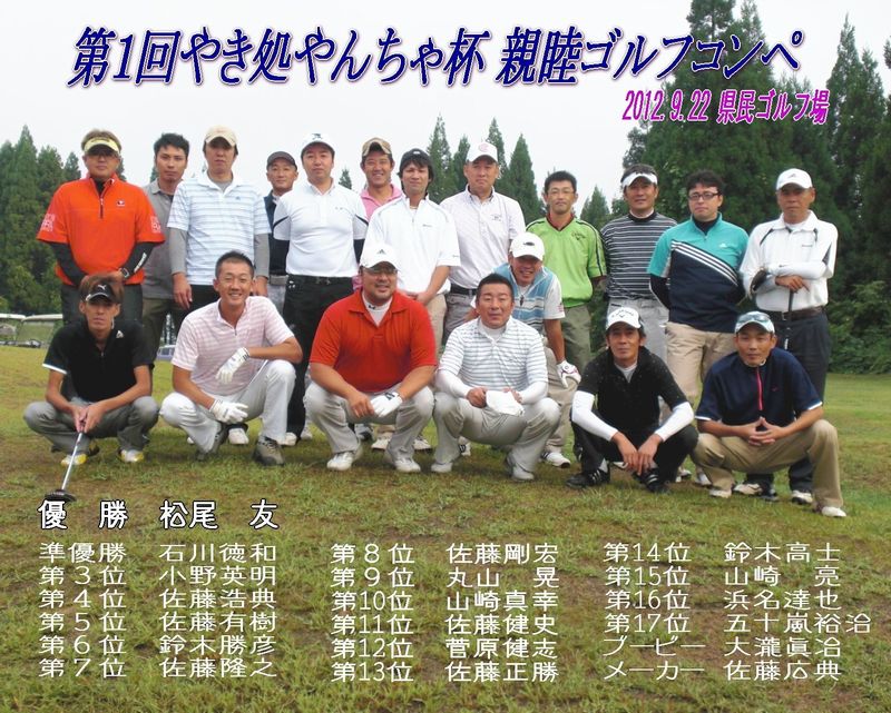 同伴もしていただき、念願叶ったコンペでした。一時はどうなる事かと思うほど1Wの調子が悪く、心が折れ掛けていましたが 店主さんの心遣いで最後までプレー出来た事に感謝です。次回また声を掛けてもらえるように、今後も修行に勤しみます。