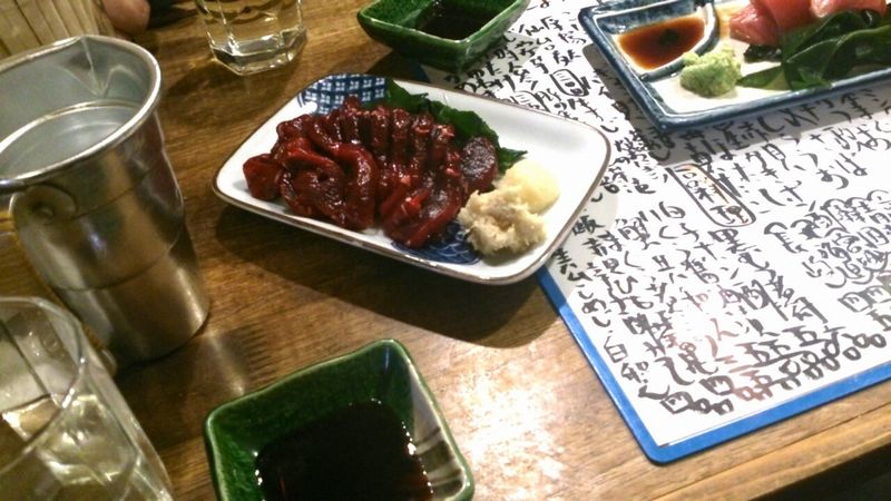 以前、来店した際には食べずに後悔した「ミンク鯨の刺身」を注文し、