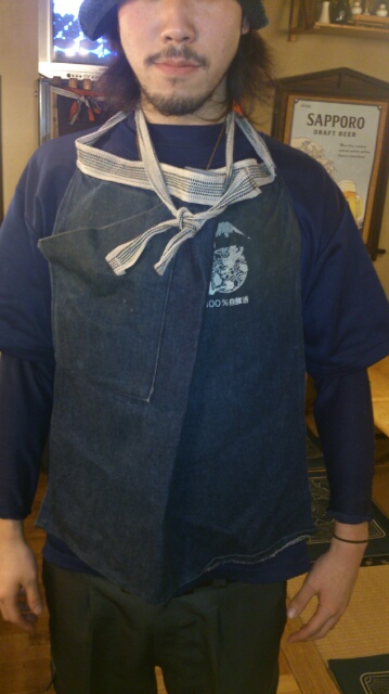 腰に掛ける【前掛け】を見事に首から掛けて、まるでこれから焼肉食う人みたくなっちゃってるのに、