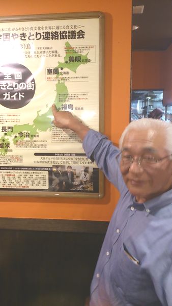 ポスターの鶴岡の場所を指差し、もっともっと世間に鶴岡のやきとり文化を