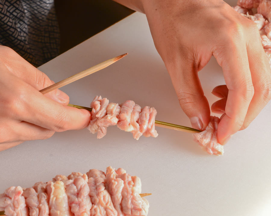 一番最初に刺す留めの肉と、一番最後に刺す肉、すなわちお客様が