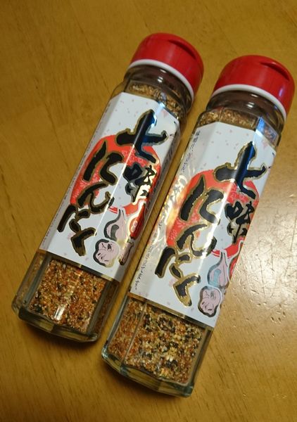 新潟方面に行くと、商標の関係なのか違う会社から「にんにく七味」という名前で販売しています。